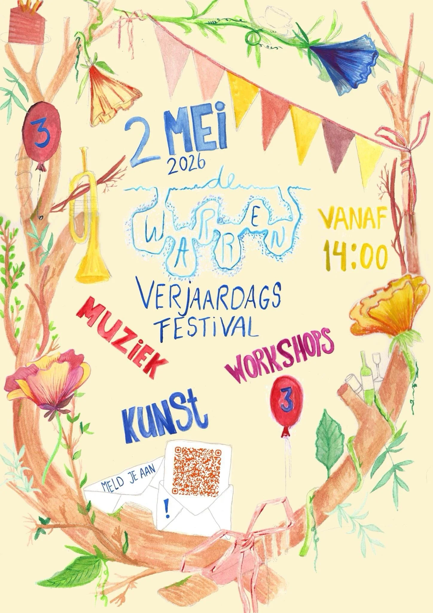 Kom op ontdekkingstocht in De Warren en word verrast door spetterende bands, vrolijke activiteiten, kunstzinnige creativiteit, heerlijke hapjes en drankjes, verjaardagstaart, dansen, slingers en oneindig veel gezelligheid.