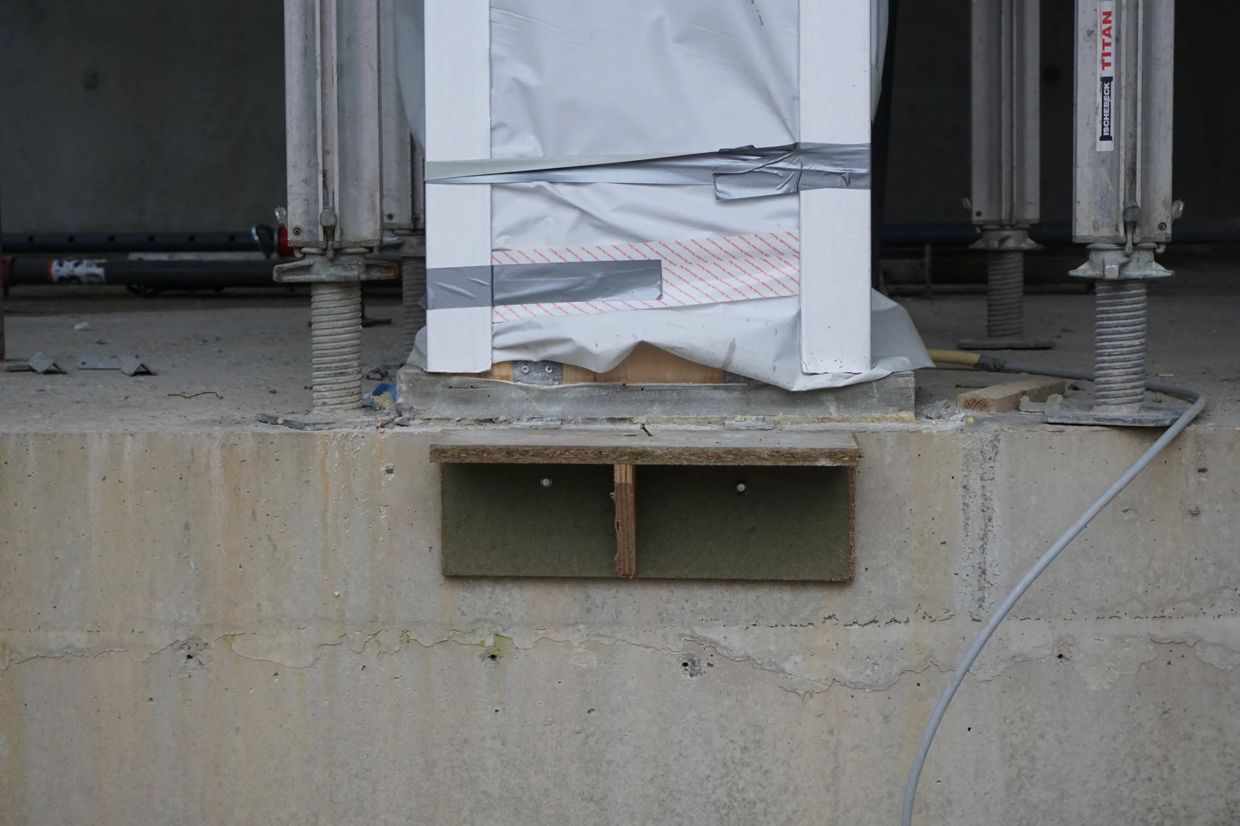 Terug naar de realiteit nu. Helemaal beneden is vers een vloer gegoten. Daar zullen we talloze keren onze stappen op zetten: op naar buiten, terug naar huis, naar de grote keuken die beneden zal worden gebouwd, of onderweg naar de grote trap om eens even de laatste mails te sturen in de flexwerkplek op de eerste verdieping. Deze kun je overigens al goed zien vanaf de buitenkant: het balkon dat nu over de woonzaal ‘hangt’, is waar we straks werkavonturen in ons huiskantoortje kunnen beleven. Jovanka, een van de toekomstige bewoners, kan zich al helemaal inbeelden hoe ze vanaf het balkon van de flexwerkplek zo de woonzaal inkijkt.