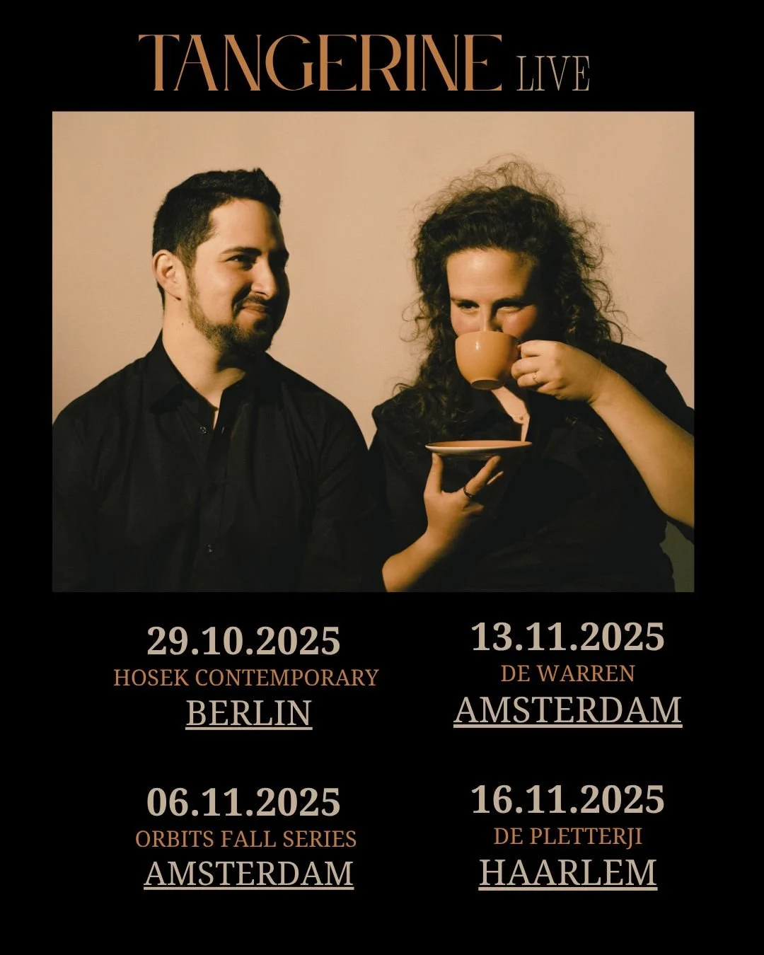 A collaboration between two musicians living in two major European cities - Amsterdam & Berlin, Tangerine’s genre-fluid music shapes a distinct sonic universe that emerges from the musicians’ similar yet individual artistic worlds.